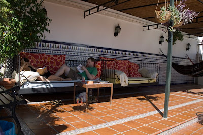 Sebaj. Helyette nyugis reggeli, bocadillo, tejeskávé, aztán nagyjából sziesztáztunk egész nap. Tetőterasz, könyv, cerveza con piña, árnyék.