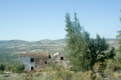 De aztán eljött az idő, és felszálltunk a buszra, és kigördültünk a szépséges Sevillából... a pusztába. Imádott, gyönyörű, kopár, fakó Spanyolországom. Halványkék ég, sehol egy maszatnyi felhő se, sárga/vörös föld... és ameddig a szem ellát olaj- olaj- olajfák...